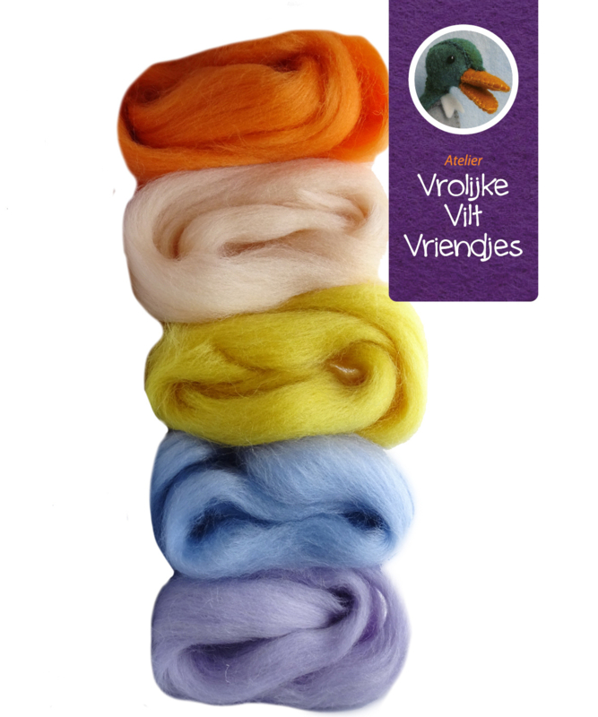 Europese biologische lontwol 27 micron, gemeleerde kleuren mix van 5 kleuren van ongeveer 10 gram.