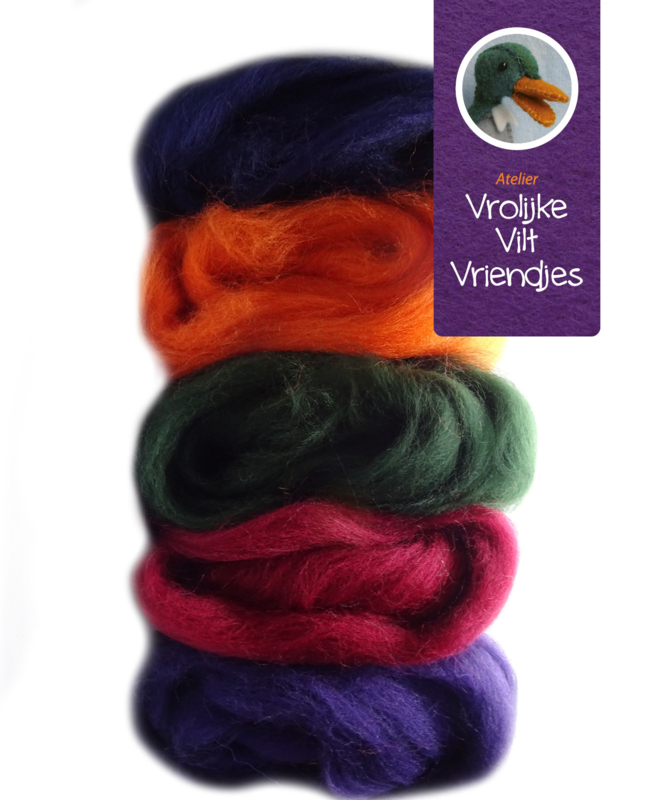Europese biologische lontwol 27 micron, gemeleerde kleuren mix van 5 kleuren van ongeveer 10 gram.
