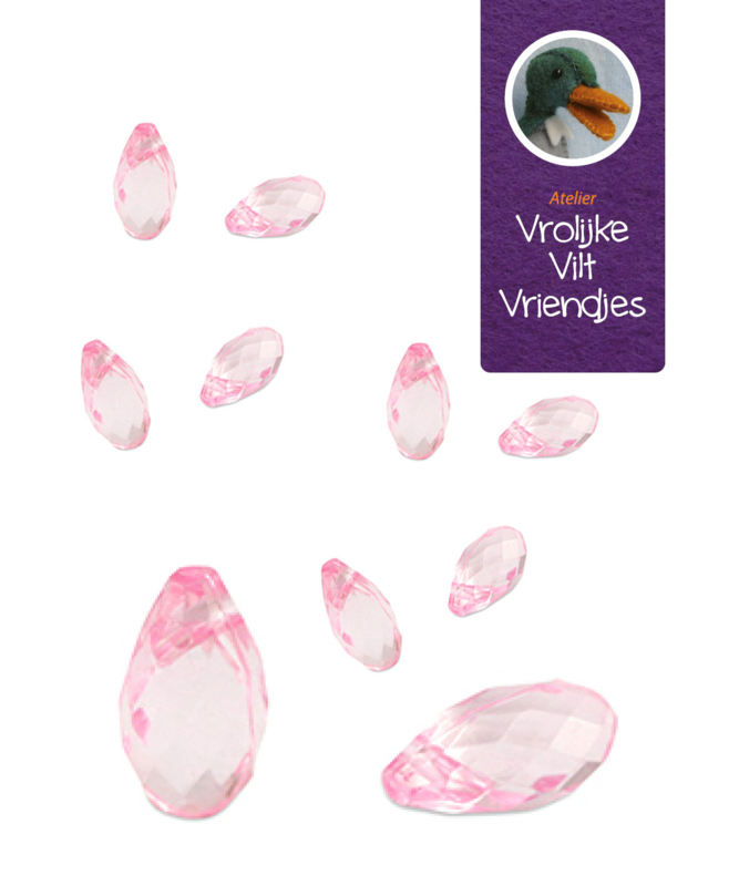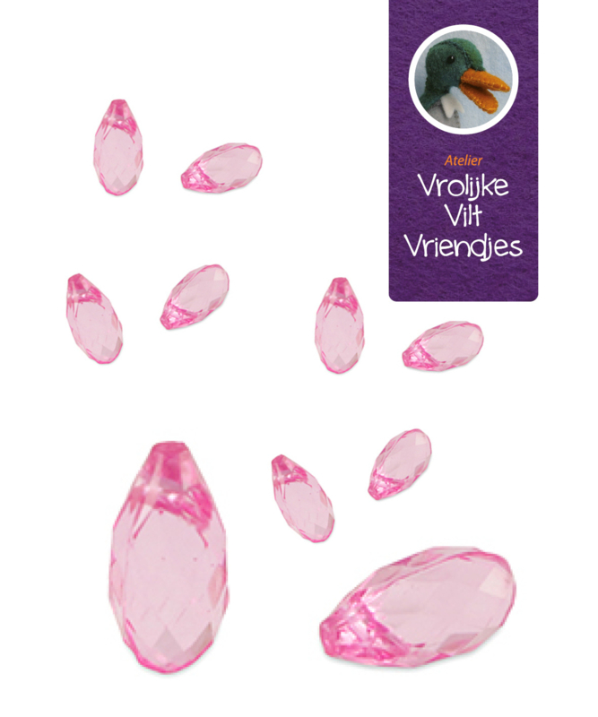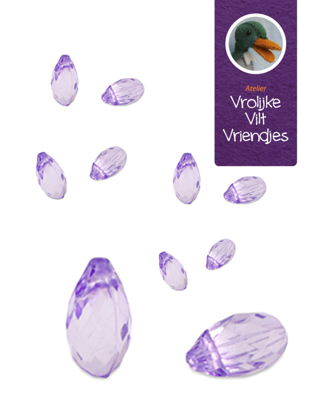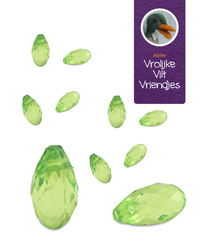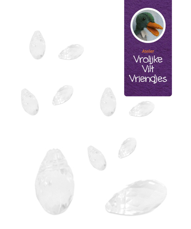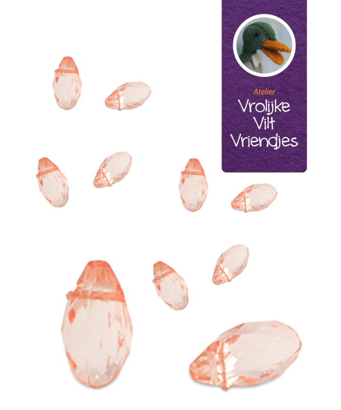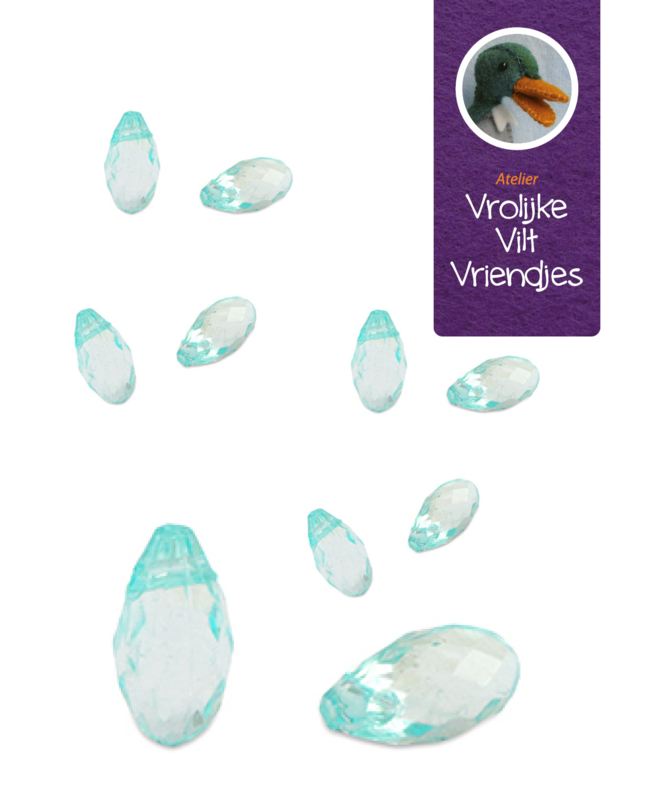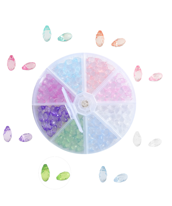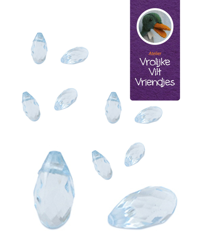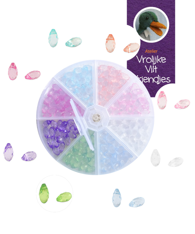 ca. 25 gram / ca 160 acryl transparant druppels van 6 bij 11 mm in opbergbak.