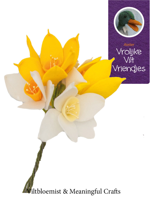 - materialen voor het maken van narcissen 3 witte en 2 gele bloemen