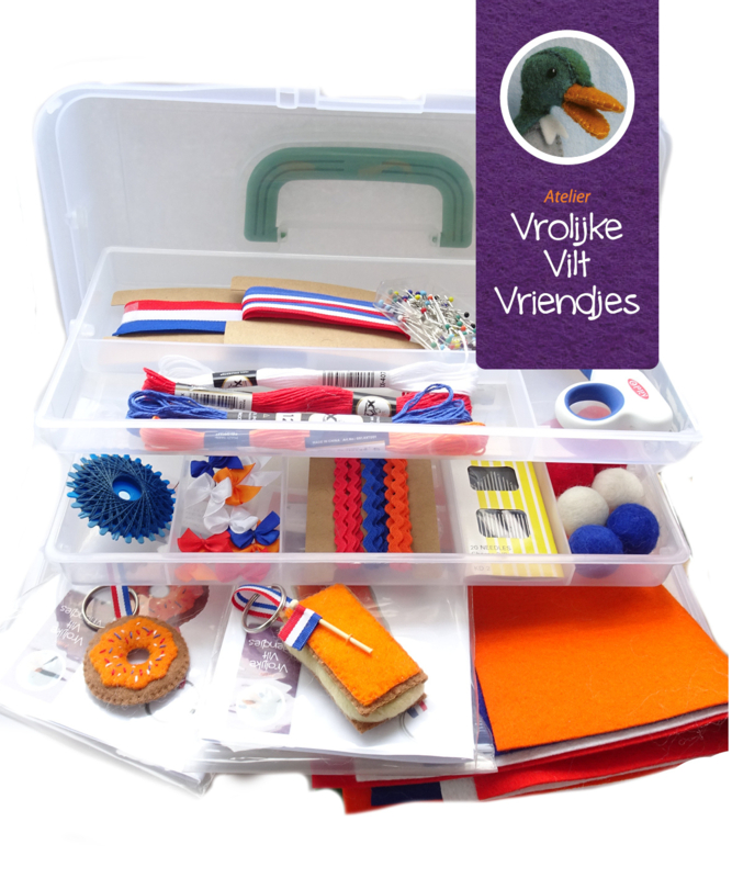 Ga aan de slag met onze koningsdag naaidoos met creme handvat en witte sluiting.