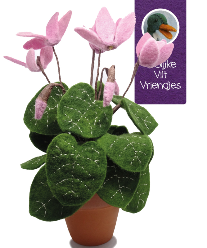 Cyclaam een kleurrijk plantje dat gemaakt wordt van sprookjeswolvilt.